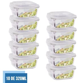 Conjunto 20 Potes Vidro 320ml Hermético 4 Travas Alimentos Conjunto com 20 Potes de Vidro com Tampa Hermética Quadrado 320ml