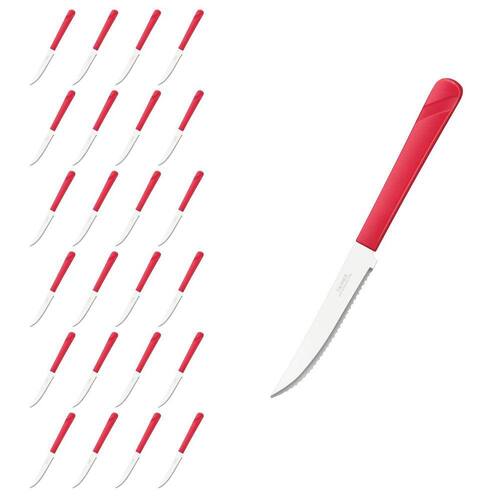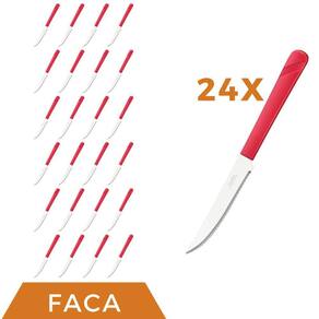 Conjunto de Facas As facas de mesa da linha Luna são um conjunto elegante e funcional para qualquer mesa de jantar. Com um cabo vermelho vibrante feito de plástico de alta qualidade, estas facas são confortáveis de segurar e fáceis de identificar em meio a outros utensílios de mesa. O aço inox de alta qualidade das lâminas garante que elas permaneçam afiadas por um longo tempo, enquanto o design elegante torna as facas uma adição atraente à sua coleção de utensílios de cozinha.