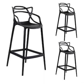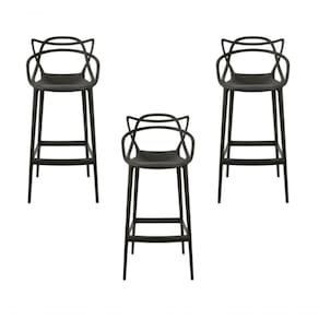 Conjunto 3 Banqueta Allegra Alta Master Empilhavel Preta Cozinha Americana Balcão Polipropileno