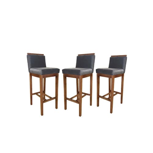 Conjunto 3 Banquetas Alta em Madeira Maciça Libéria CCS Interiores Pinhao/Cinza