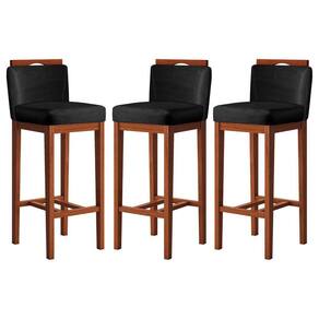 Conjunto 3 Banquetas Alta em Madeira Maciça Libéria CCS Interiores Pinhão/Preto