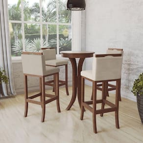 Banqueta Alta em Madeira Maciça Londres é ideal para acompanhar refeições rápidas e happy hour com amigos e família. Produzida em madeira maciça é um móvel bonito e resistente, seu tecido 100% poliéster, garante maior conforto a peça. Possui apoio para os pés. 03 unidades Acabamento da Estrutura: Verniz Altura do assento até o chão: 75 cm Altura Regulável: Não Ambiente Principal: Cozinha Cor: Pinhão Cor do Produto: Pinhão Dobrável: Não Escala de Brilho: Semi-Brilho Itens Inclusos: 3 Banquetas Linha ou Coleção: Londres Material do Assento: MDF Material do Encosto: Poliéster Necessita Montagem: Não Origem do Produto: Nacional Peso: 7 kg Possui Almofada no Assento: Não Possui Apoio Para os Pés: Sim Possui Encosto: Sim Possui Rodízio: Não Recomendações de Uso, Manutenção e Limpeza: Limpar somente com Pano úmido Tamanho: Tipo de Assento: Fixo Tipo de Encosto: Fixo Tipo de Madeira Maciça: Eucalipto Marca: CCS Interiores