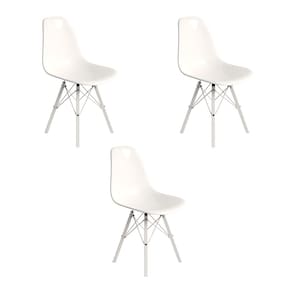 Conjunto 3 Cadeiras Eames Design Moderno Tubo de Ferro Branco Assento Branco