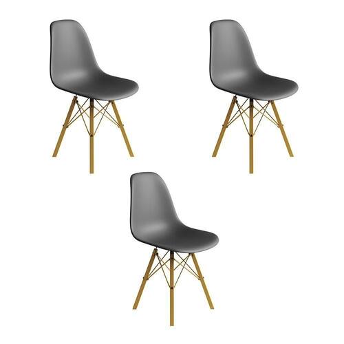 ATENÇÃO AS IMAGENS SÃO MERAMENTE ILUSTRATIVAS E PODEM SOFRER VARIAÇÕES DE COR E PEQUENOS DETALHES DE ACORDO COM O SEU MONITOR, ILUMINAÇÃO DO AMBIENTE E ATÉ MESMO A SUA PERCEPÇÃO VISUAL.Conjunto 3 Cadeiras Eames Estilo Moderno em Ferro Dourado com Assento Cinza
