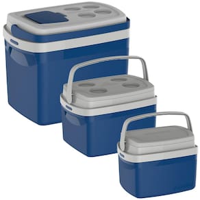 Para acompanhar seu dia na praia, camping ou até mesmo garantir as bebidas geladas e os lanchinhos em longas viagens, este conjunto de 3 caixas térmicas da Soprano é indispensável! As caixas térmicas retangulares possuem parte interna e externa em polipropileno injetado, tampa soprada e contam com isolamento em isopor. Além disso, são desenvolvidas com material atóxico e sem odor, o que garante a qualidade e a durabilidade do produto. A caixa maior de 32 litros possui exclusiva tampa de acesso rápido que facilita o uso, alças laterais embutidas, alça de mão articulável e tampa com 4 porta copos numerados. A caixa média de 12 litros possui alças laterais embutidas, alça de mão articulável e tampa com 4 porta copos numerados. Já a caixa térmica pequena também possui alça articulável e capacidade de 5 litros. O conjunto perfeito para você carregar sempre que desejar garantir as bebidas geladinhas para a reunião com amigos ou familiares!