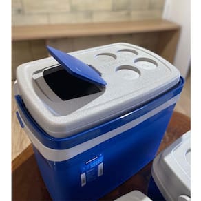 Detalhes do produto: - Exclusiva tampa de acesso rápido que facilita o uso (cooler de 32 litros); - Tampa com porta-copos numerados (coolers de 32 litros e 12 litros); - Alças de mão articuláveis com travas; - Isolamentos térmicos de isopor; - Livres de Bisfenol (BPA Free).