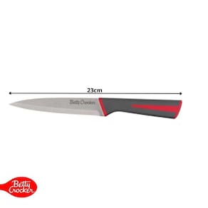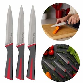 O jogo com 3 facas multiuso em aço inoxidável da Betty Crocker é a combinação perfeita entre resistência, funcionalidade e estilo.