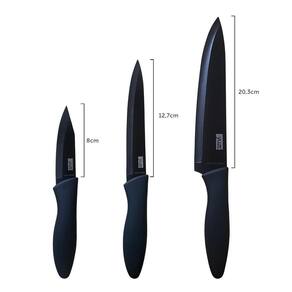 Se você busca por facas com bom desempenho, qualidade e elegãncia, o Conjunto Black Titanium Yuze é a escolha São todas com lâminas de aço inoxidável e revestimento em titânio. Podem ser afiadas normalmente e este revestimento proporciona maior durabilidade, evitando que oxidem e não deixando gosto metálico nos alimentos, benefícios idênticos aos das facas de cerâmica. São laváveis na lava-louças e possuem cabo soft touch - sensível ao toque. Presente ideal para quem manda bem na cozinha