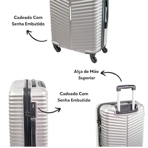 Transforme suas viagens com nosso incrível set de 3 malas de viagem, que une funcionalidade, estilo e resistência em um único produto. Ideal para todos os tipos de viagem, seja um passeio curto ou uma aventura prolongada.