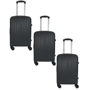 03 malas de bordo pequenas 20 polegadas Material: abs 04 rodas duplas 360 Carrinho embutido com regulagem de altura Alça superior Bolso interno de separação com zíper Fechadura Cinta elástica cruzada com trava