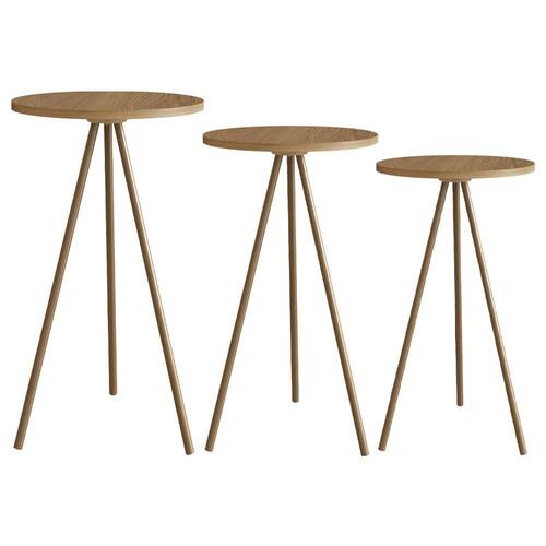 Conjunto de 3 Mesas Laterais 27957, desenvolvido para aliar funcionalidade e organização para ambientes compactos. Estrutura metálica com pintura epóxi, e tampo redondo em MDP 15mm com acabamento BP. Ideal para auxiliar nas diversas tarefas do dia a dia, produto multifuncional para ser utilizado na sua sala de estar. Produto será entregue em 03 volumes.
