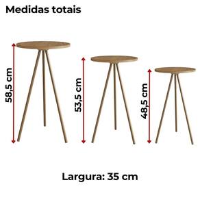 Dimensões Altura (mesa maior): 58,5 cm Altura (mesa média): 53,5 cm Altura (mesa menor): 48,5 cm Largura: 35 cm Profundidade: 35 cm