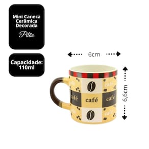 As mini canecas têm capacidade de 110ml, perfeitas para servir café expresso, coado ou outras bebidas quentes em porções pequenas. Também são ótimas como elementos decorativos para cantinhos do café, bandejas temáticas ou estantes.