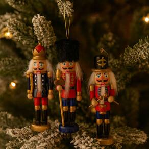 Dê um toque clássico e encantador à sua árvore de Natal com este conjunto de mini bonecos Quebra-Nozes decorativos, produzidos em madeira pintada com riqueza de detalhes. O kit contém 3 peças em modelos diferentes, nas cores azul marinho e vermelho, ideais para pendurar na árvore ou compor arranjos natalinos sofisticados.