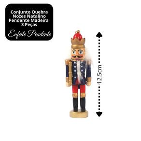 Kit 3 Mini Quebra-Nozes Madeira Luxo Pendente Natal 12cm
