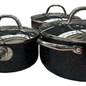 Revestimento marmorizado antiaderente, permitindo cozimento uniforme e sem aderência Fabricado em alumínio de alta qualidade, garantindo resistência e durabilidade Fácil de limpar e ideal para diversos tipos de preparo Design elegante e moderno, combinando funcionalidade e estilo Um conjunto perfeito para quem busca praticidade e eficiência na cozinha."