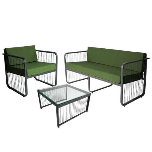 Conjunto 3 Peças Em Alumínio E Fibra Sintética Santiago Preto/verde Este elegante conjunto foi desenvolvido para transformar seu ambiente externo com sofisticacao e conforto. Com estrutura em aluminio de alta qualidade e acabamento em fibra sintetica, oferece resistencia e durabilidade para suportar as diversas condicoes climaticas, ideal para areas como gourmet, externas, de churrasqueira, ediculas e muito mais. A namoradeira e as poltronas possuem assentos estofados com tecido impermeavel, proporcionando conforto durante longas horas de lazer. O design artesanal de cada peca garante exclusividade, fazendo deste conjunto uma opcao perfeita para quem busca estilo e funcionalidade.