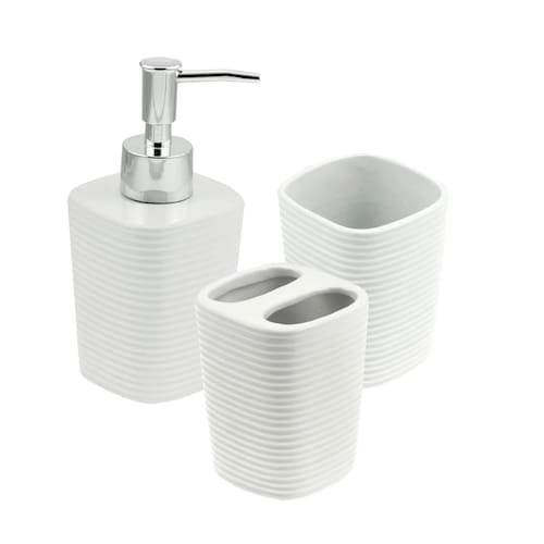 Conjunto de 3 Peças Para Banheiro de Cerâmica Lines Branco - Wolff