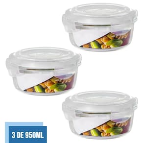 Conjunto 3 Potes 950ml Vidro Hermético Mantimentos Marmita Conjunto com 3 Potes de Vidro com Tampa Hermética Redondo 950ml Os potes com tampas herméticas Click Glass são perfeitos para o dia a dia, garantem o melhor sabor, não fica com cheiro indesejado e você pode esquentar no Microondas ou Forno Tire a tampa nesses casos , ideal para quem trabalha e leva o alimento de casa, ou para guardar diversos alimentos na geladeira/freezer. Além do mais, é fácil de lavar e super resistente. Praticidade com qualidade, veja os diferenciais: · vidro Borosilicato; · vai ao forno sem tampa , micro-ondas sem tampa e freezer; · anel de silicone removível; · mantém os alimentos frescos por mais tempo; · evita que o cheiro se espalhe; · sem risco de vazamento; · possui 4 travas; · fácil de limpar e higienizar; · super Resistente. Postamos com agilidade Informações complementares: Modelo: Pote de Vidro com Tampa Hermética Redondo Marca: quality House / Univendas Cor: Vidro Translucido Material: Vidro Capacidade: 950 ml Comprimento: 18 cm Largura: 18 cm Altura: 8 cm Peso: 665g Itens inclusos: 3 Unidade do Item descrito acima