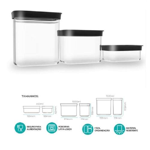 Os potes podem ir na lava louças sem deformar o material ou perderem a cor e transparência.