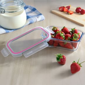 Perfeitos para transportar suas marmitas fitness, armazenar alimentos saudáveis, organizar sua cozinha ou levar a comida para o trabalho, os Potes Glass&Go oferecem praticidade para o dia a dia. Fabricados em vidro de alta resistência, eles suportam variações térmicas e podem ser utilizados no micro-ondas, freezer e lava louças sem perder sua qualidade.