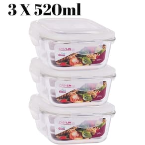Conjunto 3 Potes Vidro Hermético Tampa Mantimentos 520ml