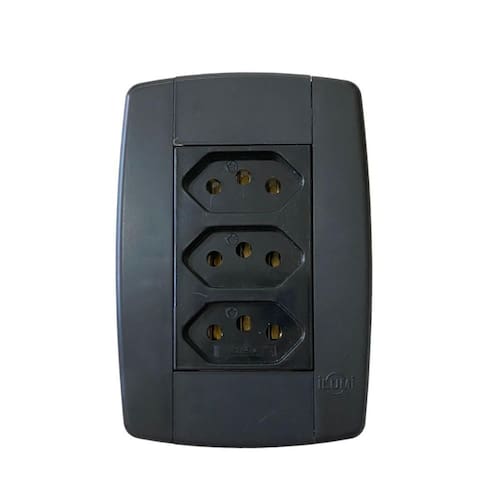 Conjunto 3 Tomadas Preta Monobloco 2P+T 20A 250V 4X2 Ilumi