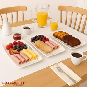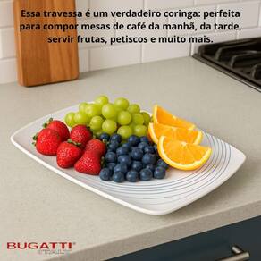 As travessas de porcelana são sinônimo de versatilidade e sofisticação, e este jogo com 3 unidades da linha Fili Blu da Bugatti eleva qualquer ocasião à altura que ela merece.