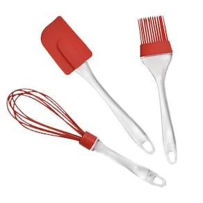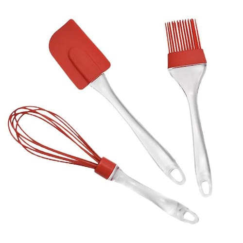 Características: - Espátula: 23,5cm de comprimento - Pincel: 21,5cm de comprimento - Batedor: 25,5cm de comprimento - Marca: Class Home - Material: Acrílico e Silicone - Conteúdo: 03 utensílios