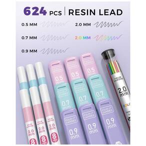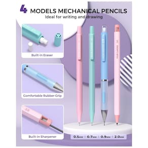 Os grafites em múltiplas espessuras foram desenvolvidos para traço suave e consistente, com um tubo de grafite colorido que permite usar a lapiseira 2,0 mm como lápis de cor mecânico em marcações e projetos criativos. As lapiseiras 0,5 mm e 0,7 mm contam com empunhadura triangular ergonômica, o modelo 0,9 mm possui grip emborrachado e a lapiseira 2,0 mm traz corpo antiderrapante com apontador integrado, oferecendo conforto e controle em sessões prolongadas de escrita ou desenho. O conjunto é indicado para usuários a partir de 14 anos que buscam um kit completo com grande volume de refis em um único estojo compacto.