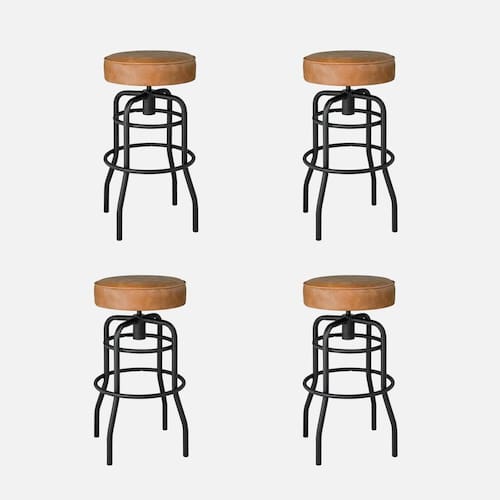 Conforto e elegância são marcas a Banqueta Paris que traz um estilo industrial diferenciado. Muito utilizada em salas, cozinhas e áreas de lazer, a banqueta giratória é perfeita para deixar esses ambientes ainda mais funcionais, práticos e bonitos. Seu acabamento é em pintura epóxi garantindo a durabilidade. Acabamento da Estrutura: Pintura Almofada do assento: Fixa Altura do assento até o chão: 70 cm Altura Regulável: Não Ambiente Principal: Cozinha Cor: Preto/Caramelo Cor do Produto: Preto/Caramelo Dobrável: Não Enchimento do Assento: Espuma D-20 Escala de Brilho: Fosco Informações Complementares: Assento Giratório Itens Inclusos: 4 Banquetas Linha ou Coleção: Paris Manual de Montagem e Instalação: https://cdn2.madeiramadeira.com.br/atributo/compoarte/1369043-manual-conjunto-banqueta-paris-04-pcs.pdf Material do Assento: Almofada com Espuma Necessita Montagem: Não Origem do Produto: Nacional Peso: 4,5 kg Possui Almofada no Assento: Sim Possui Apoio Para os Pés: sim Possui Encosto: Não Possui Rodízio: Não Recomendações de Uso, Manutenção e Limpeza: Utilizar Pano Umedecido Revestimento do Assento: Courino Tipo de Assento: Fixo
