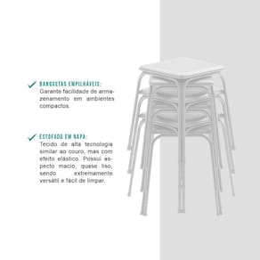O Conjunto de Banquetas é ideal para quem busca por produtos multifuncionais. Seu design contemporâneo transmite jovialidade e personalidade para a decoração. Por serem compactas e leves, facilitam a movimentação pelos ambientes da casa além de proporcionar economia de espaço de armazenagem pois podem ser facilmente empilháveis.