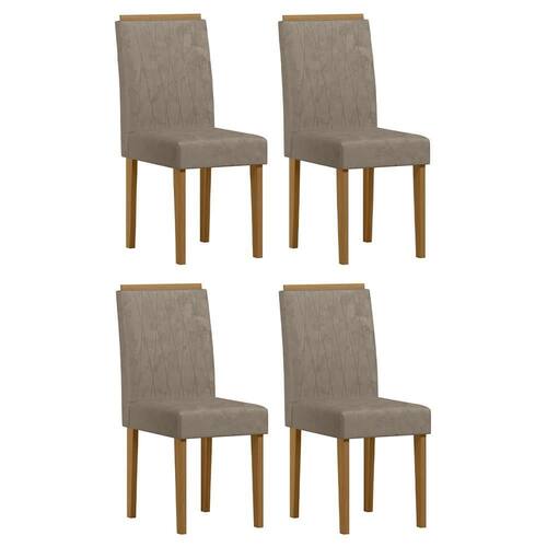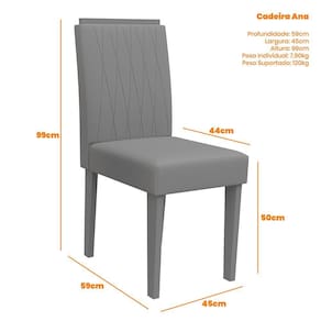 Conjunto 4 Cadeiras Ana - New Ceval Apresentamos o Conjunto de 4 Cadeiras Ana, ideal para quem busca elegância e conforto. Com estrutura em MDF e pintura UV, essas cadeiras são revestidas em tecido e possuem espumas D-18 no assento e no encosto, garantindo maciez e durabilidade. As cantoneiras de travamento em aço carbono proporcionam maior estabilidade, e os pés em MDF complementam o design robusto. Cada cadeira suporta até 120 kg, sendo perfeitas para sua sala de jantar.