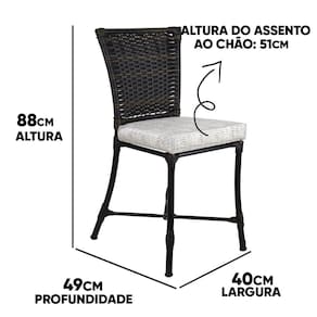 Dimensões: Cadeira Angra: Altura total: 87 cm Altura do assento ao chão: 50 cm Largura: 40 cm Profundidade: 50 cm Suporta até 170 kg Assento almofadado