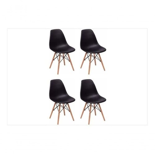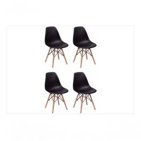 Conjunto 4 Cadeiras Charles Eames Eiffel Concha Fixa - Preto Cadeira Eiffel Eames Base Madeira A CADEIRA CHARLES EAMES EIFFEL foi criada nos anos 50, é vencedora do Museu de Nova York da concorrência Design de Mobiliário Low-Cost Arte Moderna Internacional. Sua base é em MADEIRA no formato de uma torre faz com que o ambiente não fique sobrecarregado. Adequa-se perfeitamente para compor conjunto de mesa de jantar ou qualquer outro ambiente em sua casa ou escritório. Ideal para receber amigos e familiares com um toque de elegância e charme. As pernas da cadeira são em madeira e fios de aço preto no qual garantem estabilidade à cadeira.