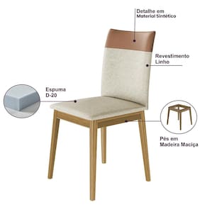 Acabamento: Revestido com tecido de Linho e a parte superior do encosto com material sintético;