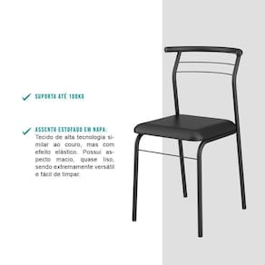 Altura (cm): 84,5 cm | Profundidade (cm): 51 cm | Revestimento: Napa | Produto precisa de Montagem?: Sim | Cor: Preto | Conteúdo da Embalagem: 1 Conjunto 4 Cadeiras de Jantar 1708 Carraro Preto | Largura do Produto com Embalagem (cm): 47 cm | Material do Assento: Espuma | Produto: Cadeira | Altura do Produto com Embalagem (cm): 95 cm | Ambiente indicado: Cozinhas | Instruções/Cuidados: Nenhuma Informação | Nome do Simples no Fornecedor: Conjunto 4 Cadeiras de Jantar 1708 Carraro Preto | Descrição do Tamanho: 95 cm x 47 cm x 76 cm | Cor Via Varejo: Preto | Material para Filtro: Metal | Família da Cor: Preto | Estado de Origem: RS | Comprimento do Produto com Embalagem (cm): 76 cm | Cor do Revestimento: Preto | PrazoExp: 2 | Largura do produto (cm): 48 cm | Peso: 8,20 | Peso do Produto com Embalagem (kg): 11,04 kg