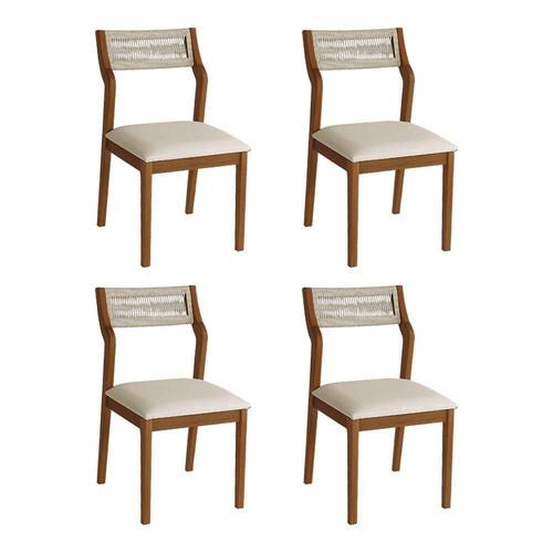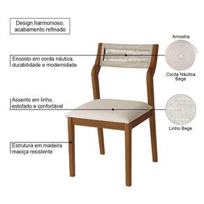 AS IMAGENS SÃO MERAMENTE ILUSTRATIVAS E PODEM SOFRER VARIAÇÕES DE COR E PEQUENOS DETALHES DE ACORDO COM O SEU MONITOR, ILUMINAÇÃO DO AMBIENTE E ATÉ MESMO A SUA PERCEPÇÃO VISUAL.Conjunto 4 Cadeiras de Jantar Lagum Jequitibà Terra Encosto Premium Linho Bege e Corda NÃutica