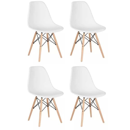 Conjunto 4 Cadeiras Eames Eiffel Dkr Movescan Branca Conjunto 4 Cadeiras Eames Eiffel Dkr Movescan Branca - Cadeira de Jantar Design Moderno Cadeiras Eames com Base Eiffel em Aço, inspiradas nos modelos de Charles Eames.São cadeiras, com curvas detalhadamente desenvolvidas para o seu conforto.Com formato ergonômico para melhor adaptação e experiência de nossos clientes, sua concha é produzida em PP (Polipropileno) garantindo durabilidade e conforto em seu encosto.