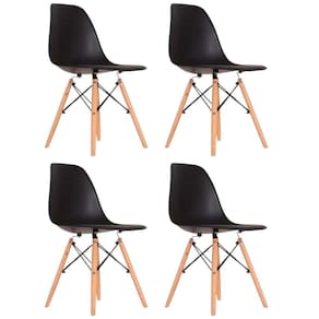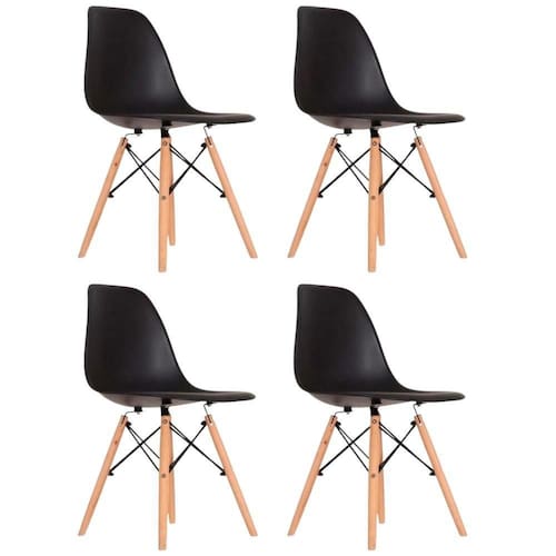 Conjunto 4 Cadeiras Eames Eiffel Dkr Movescan Preta Conjunto 4 Cadeiras Eames Eiffel Dkr Movescan Preta - Cadeira de Jantar Design Moderno Cadeiras Eames com Base Eiffel em Aço, inspiradas nos modelos de Charles Eames.São cadeiras, com curvas detalhadamente desenvolvidas para o seu conforto.Com formato ergonômico para melhor adaptação e experiência de nossos clientes, sua concha é produzida em PP (Polipropileno) garantindo durabilidade e conforto em seu encosto.