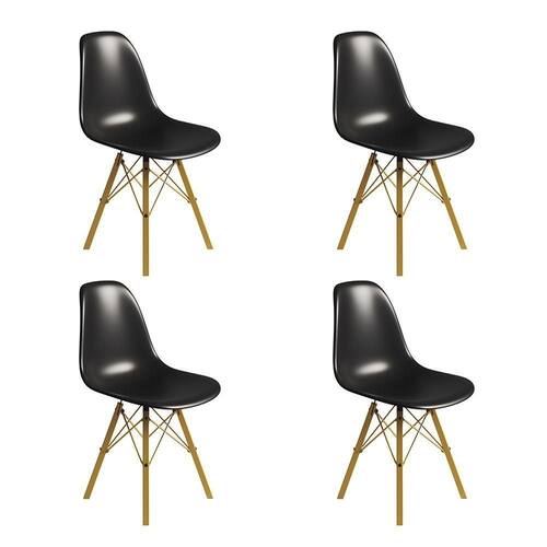 ATENÇÃO AS IMAGENS SÃO MERAMENTE ILUSTRATIVAS E PODEM SOFRER VARIAÇÕES DE COR E PEQUENOS DETALHES DE ACORDO COM O SEU MONITOR, ILUMINAÇÃO DO AMBIENTE E ATÉ MESMO A SUA PERCEPÇÃO VISUAL.Conjunto 4 Cadeiras Eames Tubo Ferro Dourado Assento Preto