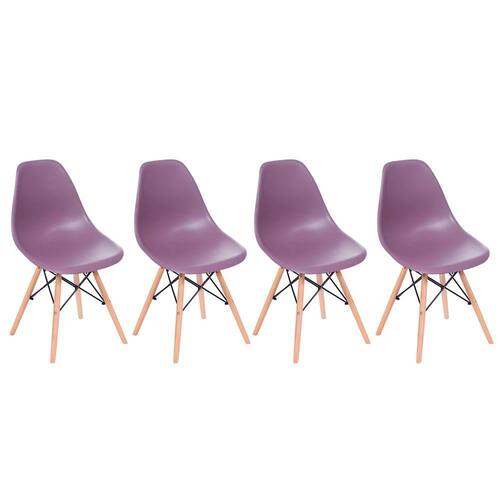 O Conjunto 4 Cadeiras Eiffel com Base em Madeira – Roxa é ideal para compor e decorar ambientes. Composto por cadeiras Eames Eiffel que suportam até 120kg cada e possuem assento em Polipropileno, o conjunto é perfeito para proporcionar conforto e beleza para sua casa.