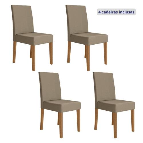 Conjunto 4 Cadeiras Estofadas 96cm X 44cm Carvalho/Bege
