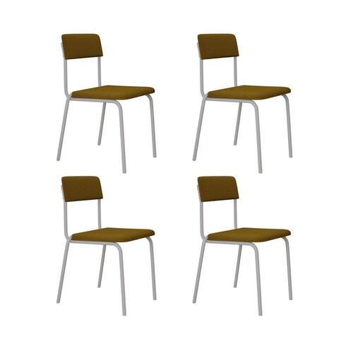 Conjunto 4 Cadeiras Estofadas Fixa Empilhável Fit Mostarda City / Branco Fosco - Amarelo