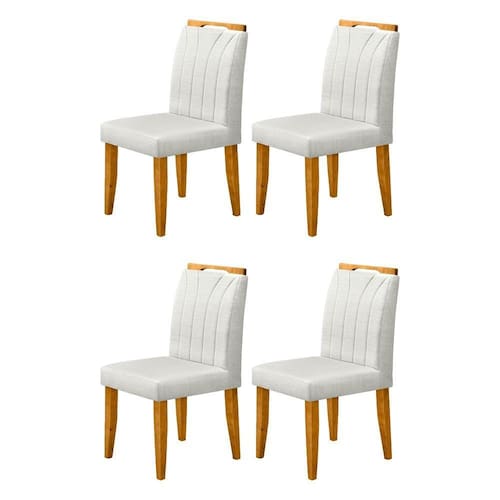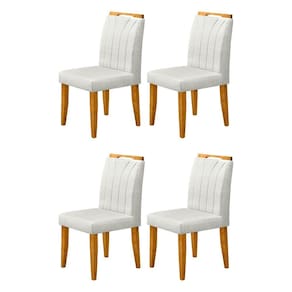 Conjunto 4 Cadeiras Onix em Linho com Pés de Madeira Maciça - Bege Claro