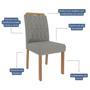 Conjunto 4 Cadeiras Paola Wood Madeira/linho Grafite - Cimol Móveis Madeira/linho Grafite Conjunto 4 Cadeiras Paola Wood - Cimol Móveis O Conjunto de Cadeiras Paola Wood combina sofisticação e resistência, com estrutura e pés em Madeira Tauari e acabamento em verniz. O assento revestido em tecido e espuma de alta densidade proporciona conforto, enquanto o encosto com detalhe bordado adiciona um toque de elegância. Com design clássico e acabamento refinado, cada cadeira suporta até 100kg, tornando-se a escolha perfeita para compor ambientes acolhedores e sofisticados. ESPECIFICAÇÕES: - Estrutura em Madeira Tauari - Acabamento em verniz - Revestimento em tecido - Espuma de alta densidade - Encosto com detalhe bordado frente e verso - Moldura em madeira com acabamento em verniz - Pés em Madeira Tauari - Cada cadeira tem capacidade para suportar até 100kg