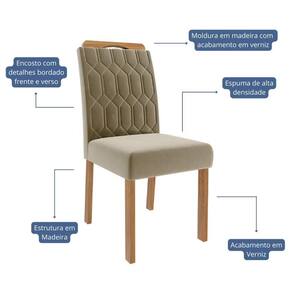 Conjunto 4 Cadeiras Paola Wood Madeira/suede Joli - Cimol Móveis Madeira/suede Joli Conjunto 4 Cadeiras Paola Wood - Cimol Móveis O Conjunto de Cadeiras Paola Wood combina sofisticação e resistência, com estrutura e pés em Madeira Tauari e acabamento em verniz. O assento revestido em tecido e espuma de alta densidade proporciona conforto, enquanto o encosto com detalhe bordado adiciona um toque de elegância. Com design clássico e acabamento refinado, cada cadeira suporta até 100kg, tornando-se a escolha perfeita para compor ambientes acolhedores e sofisticados. ESPECIFICAÇÕES: - Estrutura em Madeira Tauari - Acabamento em verniz - Revestimento em tecido - Espuma de alta densidade - Encosto com detalhe bordado frente e verso - Moldura em madeira com acabamento em verniz - Pés em Madeira Tauari - Cada cadeira tem capacidade para suportar até 100kg