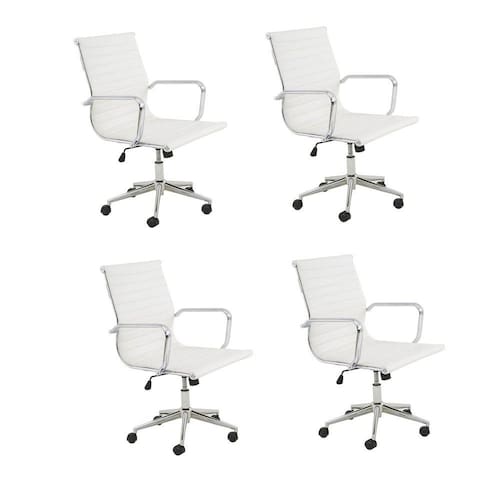 Design contemporâneo que agrega elegância e estilo para o seu dia a dia. Aproveite o conjunto com 4 peças para garantir a ambientação do seu escritório, sala de reunião ou home office. Conjunto com 4 Cadeiras Office com encosto baixo, estrutura em aço cromado e revestida em PU, possui regulagem de altura do assento com pistão á gás e sistema relax, possui base giratória em aço cromado com rodízios em nylon. Acabamento da Estrutura: Cromada Almofada do assento: Fixa Altura do assento até o chão: 45 cm Ambiente Principal: Escritório Apoio para Braços Estofado: Não Braço com Ajuste de Altura: Não Complexidade da Montagem: Baixa: pode ser montado por uma pessoa sozinha Cor: Branco Cor da Base: Cromado Cor do Produto: Branco Dobrável: Não Empilhável: Não Enchimento do Assento: Espuma D-28 Enchimento do Encosto: Espuma D-28 Encosto Reclinável: Não Escala de Brilho: Fosco Estrutura do Encosto: Aço cromado, nylon, espuma e poliuretano Giratória: Sim Informações Complementares: Conjunto com 4 Cadeiras para escritório giratória, com mecanismo de regulagem de altura (altura mínima 89 e altura máxima 98) através de um pistão à gas, e sistema relax, com braços de alumínio (alguns modelos acompanham capa protetora dos braços em PU co Itens Inclusos: 4 Cadeiras, Kit Ferragens e Manual de Montagem Linha ou Coleção: Cadeiras Office Manual de Montagem e Instalação: https://cdn2.madeiramadeira.com.br/atributo/rivatti/899001-manual-sevilha-baixa-pu-hb31.pdf Material da Base: Aço Cromado Necessita Montagem: Sim Origem do Produto: Importado Peso: 9,1 kg Possui Apoio para Braços: Sim Possui Apoio Para os Pés: Sim Possui LED: Não Possui Rodízio: Sim Recomendações de Uso, Manutenção e Limpeza: Uso interno. Não expor ao sol ou umidade. Não exceder a capacidade de peso indicada. Tenha certeza que todos os parafusos estão bem apertados antes de usar o produto. Limpar com pano macio umedecido em solução de água e sabão neutro e secar em seguida. Não utilizar produtos químicos ou abrasivos. Para manter e dar brilho na base, sugere-se o polimento com cera automotiva. Revestimento do Assento: Poliuretano Revestimento do Encosto: Poliuretano Rodízio com Trava: Não Sistema de Montagem: Encaixe e parafusos Suporta Até (kg): 120 kg Tipo de Assento: Fixo Tipo de Encosto: Fixo