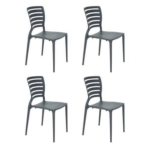 Cor da estrutura da cadeira: Grafite | Marca: Tramontina | Modelo: Sofia | Cor do assento: Grafite | Fabricante: Tramontina | Material dos pés: Polipropileno | Fonte do produto: Nacional | É cadeira de balanço: Não | Material do estofamento: Polipropileno | É empilhável: Sim | É cadeira para exterior: Não | Quantidade de cadeiras por conjunto: 4 | Materiais da estrutura: Polipropileno | Requer montagem: Não | Material do assento: Polipropileno | Incluí estofamento: Não | Estilo: Clássico | Peso máximo suportado: 182kg | É dobrável: Não | Condição do item: Novo | Com assento almofado: Não | É kit: Sim