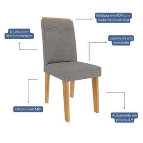 Com um design sofisticado e elegante, o Conjunto de Cadeiras Taís é ideal para compor sua sala de jantar com charme e conforto. Sua estrutura em MDF com pintura UV garante durabilidade, enquanto o assento revestido em tecido e a espuma de alta densidade oferecem máximo aconchego. O encosto com detalhes bordados e a moldura em MDF com acabamento em laca adicionam um toque refinado ao visual. Com pés em MDF e capacidade para suportar até 100kg, é a escolha perfeita para quem valoriza qualidade e estilo.